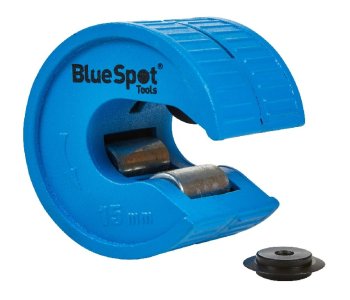 The Blue Spot Tools 15mm Pipe And Tube Cutter With Extra Blade features a replaceable cutter wheel and adjusts automatically to 15mm.