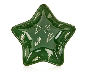 24Cm Green Star Shaped Plate With White Christmas Trees