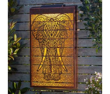 - Intricately detailed elephant design with warm LED solar back-lighting