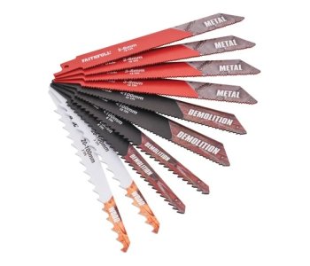 The Sabre Saw Blade Set 150mm Carded, 10 Piece made by Faithfull contains 10 sabre saw blades in 5 popular types allowing you to cut a wide variety of metal and wood, making them ideal for demolition projects.