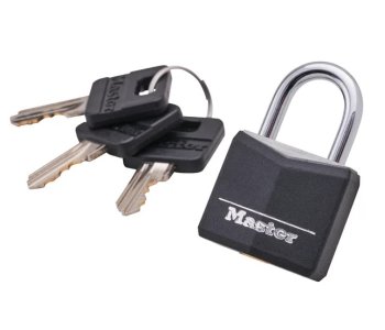 These padlocks are made of 30mm wide solid aluminium body with a 5mm hardened steel shackle and a protective vinyl cover. In a black finish.