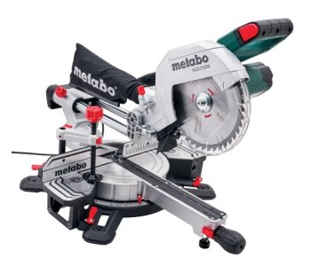 The Metabo KGS 216 MN Sliding Mitre Saw 1500W in the 240V Version has a die-cast aluminium work bench and a sliding function for wide work pieces. It is ideal for sawing wood, coated panels and plastics. It has a freely adjustable table extension on both sides with a practical support surface and integrated crosscut fence.