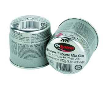 Pierceable gas cartridge that is suitable for a variety of cam stoves and burners. Contains fuel under pressure. Highly flammable