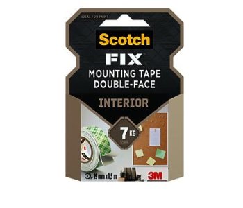 FOR INDOOR USE: Scotch-FIX Interior Mounting Tape is a foam double-sided adhesive tape intended for indoor use and is ideal on painted drywall, finished wood, metal, acrylic, tile and glass