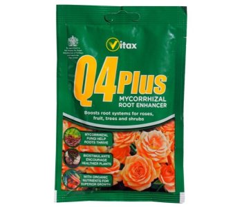The Vitax Q4 sachet 60g is a rooting enhancer and organic fertiliser that contains mycorrhizal fungi and a range of biostimulants to encourage rapid root growth and early establishment of plants.
