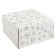 This easy to assemble cake/treat box, featuring a luxury silver snowflake foil print, is a gorgeo