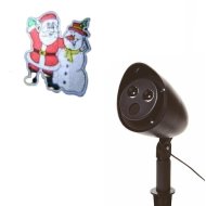 Have Santa & Snowman illuminate your house, simply stake this laser into soft ground, plug in
