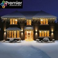Warm White LED Snowing Icicle Lights with a snowing speed controller to change the appearance of