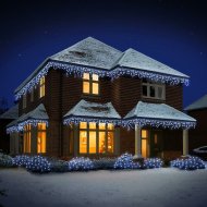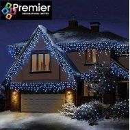 Blue and White LED Snowing Icicle Lights with a snowing speed controller to change the appearance