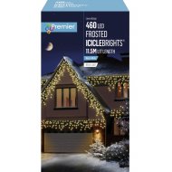Multi-action frosted cap icicle lights with 460 warm white LED's.