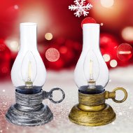 This antique style decorative LED oil lamp illuminates with a warm white glow creating a warm and