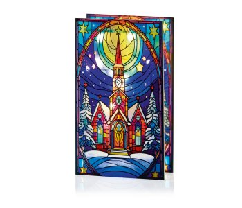 21 X 13Cm Battery Operated Lit Church With Star Stained Glass