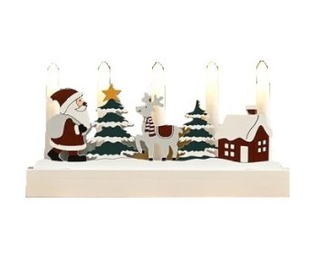 A modern designed candlebridge depicting a santa scene. The battery operated design makes it fully mobile, ideal for any room in the house.