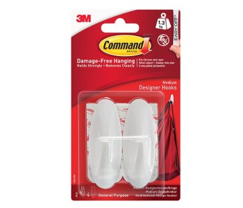 CommandT Medium Designer Hooks, an innovative solution for hanging office, kitchen and other household items securely and damage free. They hold strongly and remove cleanly using 3M stretch-release technology.