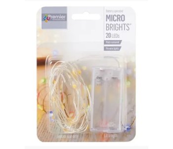 From the micro brights range comes these pin wire LED lights. With 20 LED's each, they come in white, warm white or multi-coloured.