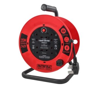1 x Faithfull Open Cable Reel 240V 20M 13A 4 Socket (1.25mm Cable)