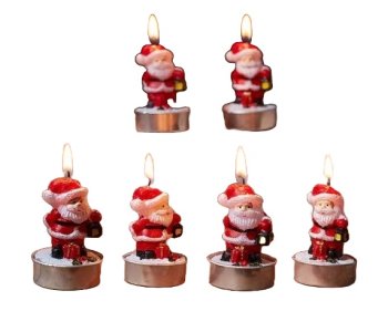 Add some warmth to your home this Christmas. Whimsical Santa-shaped tealight candles with handpainted details
