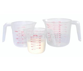 Accurately measure liquids with this highly useful set of three plastic measuring jugs, all with metric and imperial red markings. Includes a 1100ml (2 pint), 550ml (1 pint), and 250ml (1/2 pint) jug.