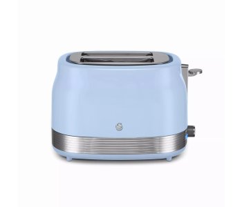 2 SLICE DESIGN This Swan Retro toaster features 2 variable width slots with a self-centering function. It evenly toasts bread, bagels, breakfast muffins and crumpets of all sizes with the perfect consistency.
