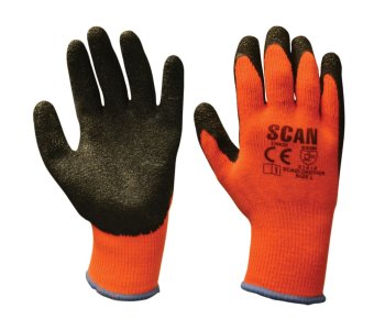This three-pack of Scan Orange/Black Knitshell Thermal Gloves (size L) boast a high-visibility colourway, seamless acrylic 10g brushed liner and a black latex wrinkle finish coating to the palm and fingers, which gives excellent grip in both wet and dry conditions. Ideal for the construction, automotive and handling industries - and perfect for keeping warm in colder weather! Conforms to EN ISO 21420 and EN 388.