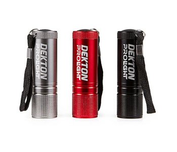 The Dekton tracker flashlight is small in size but big on features. This weatherproof torch features a high intensity LED , one button action and is available in a choice of 3 colours