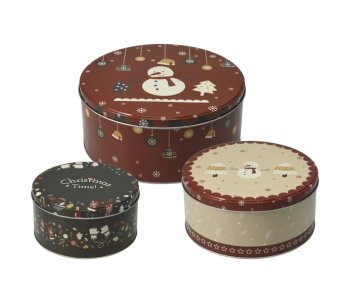 Store your festive bakes in these fun nesting tins. The set includes 3 sturdy round tins with lids, each a different size and designed to nest inside one another for quick and compact storage.