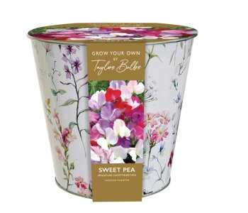 The Zinc Floral Sweet Pea Planter is an all-in-one "grow-your-own" kit designed for indoor use. It includes everything necessary to grow the fragrant, miniature 'Sweetheart Mix' sweet peas on a windowsill or tabletop.